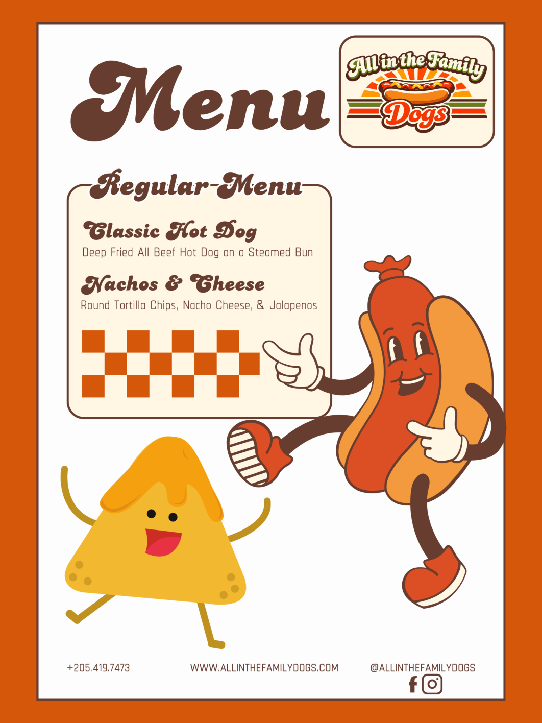 All In the Family Dogs is exactly what it sounds like — a family-owned hot dog trailer built on love, hard work, and really good food. Based in Central Alabama, we set up around local businesses, community spots, and festivals to serve up hot dogs (and favorites like nachos) that hit the spot.